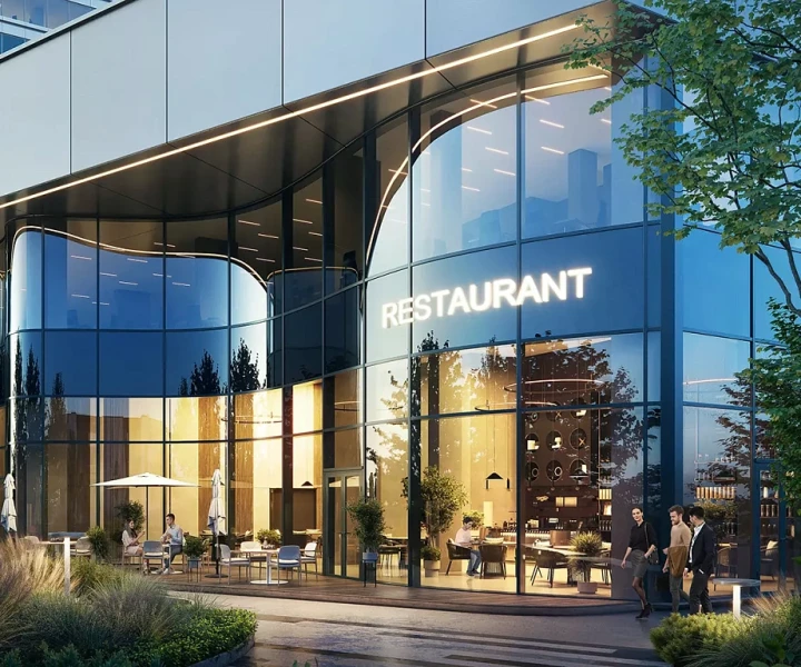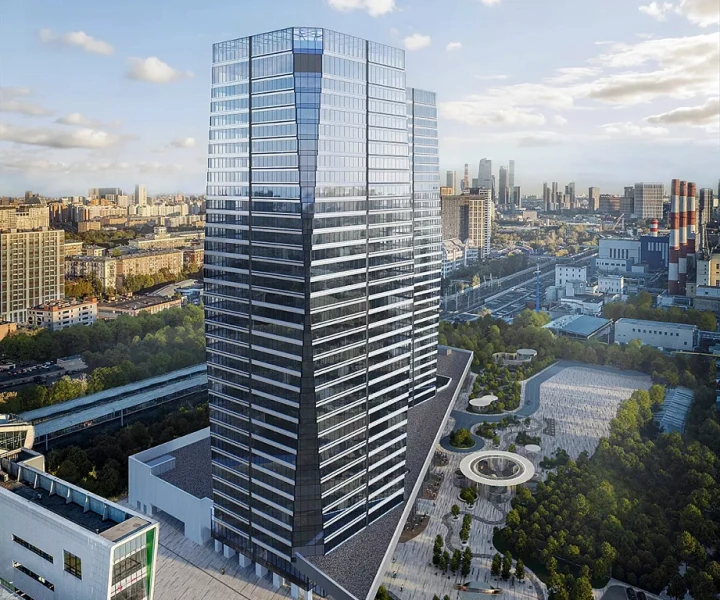 Офисные башни объединяет двухэтажное многофункциональное пространство галерейного типа, где разместятся магазины и сервисная инфраструктура для резидентов делового центра и жителей района.
