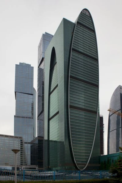 «Башня Империя» возвышается на 239 метров, ее облик притягивает внимание и впечатляет разнообразием геометрических форм (овальные, параллелограммические), а уникальная зеркальная поверхность с зеленоватым оттенком добавляет зданию особого шарма.