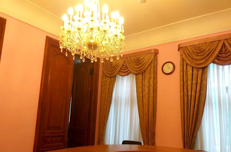 Это здание готово принимать самых взыскательных арендаторов. На первом этаже предусмотрена профессиональная охрана, работающая круглосуточно. Второй этаж отведен под VIP-зону для руководства и зал для важных встреч, где изысканная отделка, камин и мебель из натурального дерева создают атмосферу комфорта. На третьем этаже расположатся сотрудники компании и различные бытовые помещения. Планы кабинетов здесь тщательно продуманы.