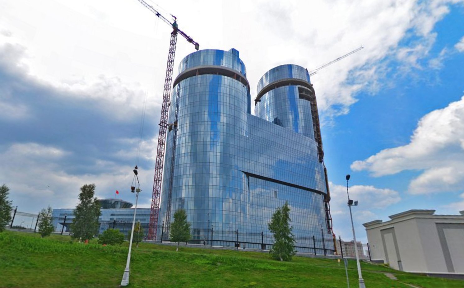 - Здание возведено из монолитного железобетона и состоит из двух башен, соединённых между собой, высотой 22 и 27 этажей.