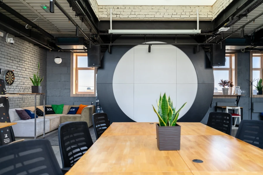 Этот офис легко трансформируется в современный конференц-зал. Представьте, сколько средств вы сможете сэкономить, отказываясь от аренды отдельного помещения для мероприятий.