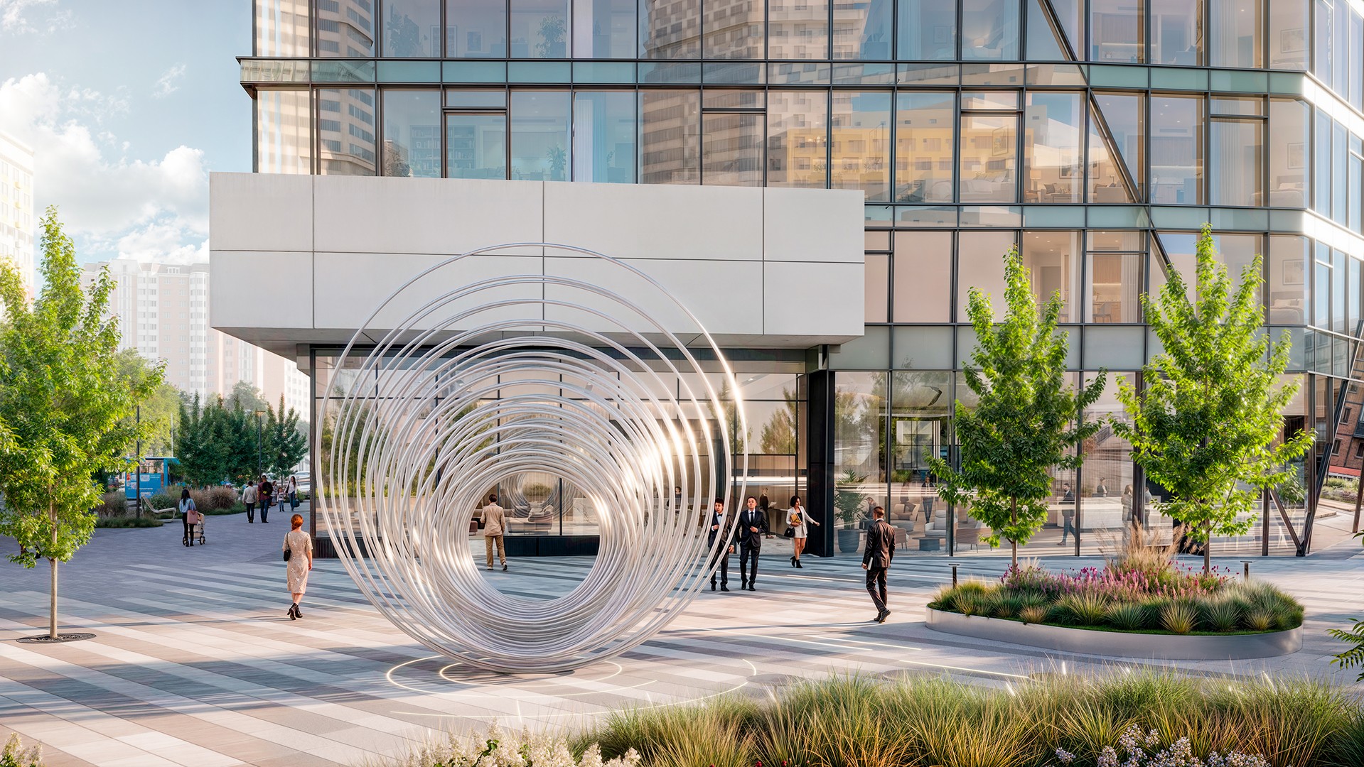 Комплекс включает в себя три офисных здания и торговый центр. Характеристики бизнес-центра: просторные и эффективные открытые площадки на этажах, современные системы вентиляции и кондиционирования, надежные инженерные решения, круглосуточная охрана и профессиональное управление зданиями. Подземная парковка предлагается с расчетом 1 место на каждые 70 кв. м арендуемой площади.