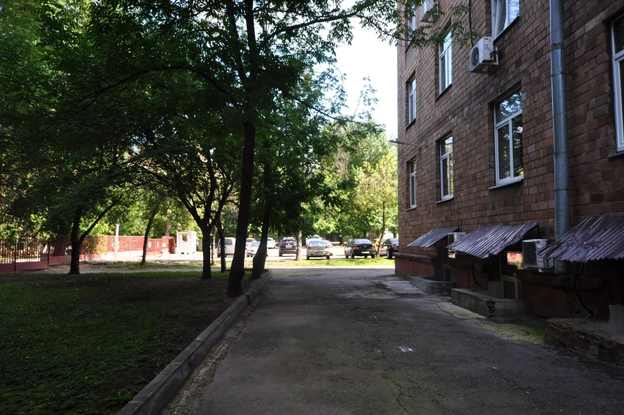 Панельное здание комплекса построено в классическом стиле прошлого столетия. Восьмиэтажный объект выполнен в светло-бежевых оттенках. Входная группа темно-шоколадной цветовой палитры создает некоторый контраст. Здесь арендаторы подберут помещения с отделкой, соответствующей классу объекта.