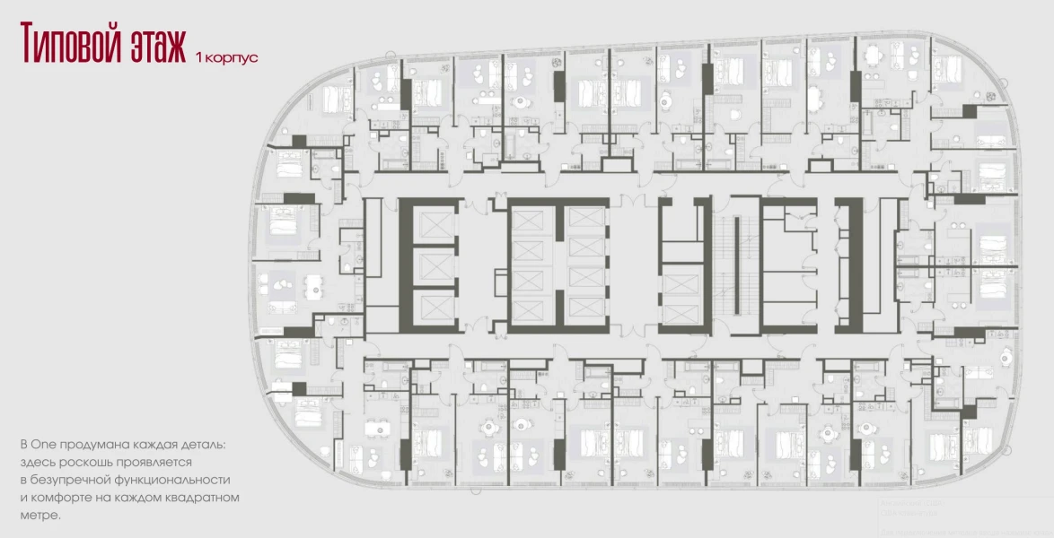 One – уникальный небоскреб высотой 379 метров, который станет самой инновационной башней. Архитектурная концепция разработана под руководством главного архитектора Москвы Сергея Кузнецова и и воплощает идеи прогресса, устойчивости и абсолютного комфорта. Две соединённые башни с выразительным силуэтом напоминают ленту Мёбиуса — символ бесконечного движения и гармонии. Форма здания подчеркивает переход от делового центра Москва-Сити к новому району «Сити-2», завершая формирование кластера и открывая следующую главу в развитии мегаполиса.