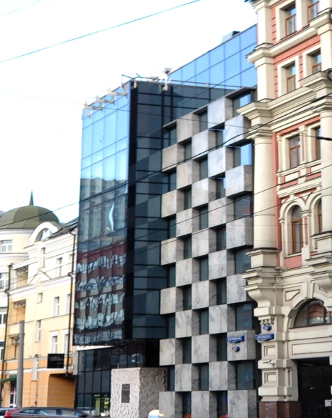 Бизнес-центр «Пульман» словно приглашает нас сыграть в шахматы. Его архитектурные формы, удивительные и причудливые, созданы из стекла и мрамора, формируя уникальный рисунок, напоминающий шахматную доску. Это стильное строение искусно расположилось между двумя зданиями советской эпохи, радуя взгляд изысканным декором своего фасада.
