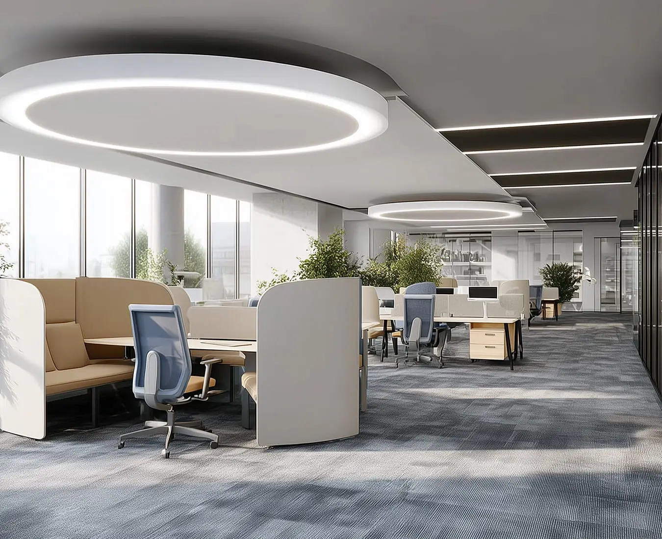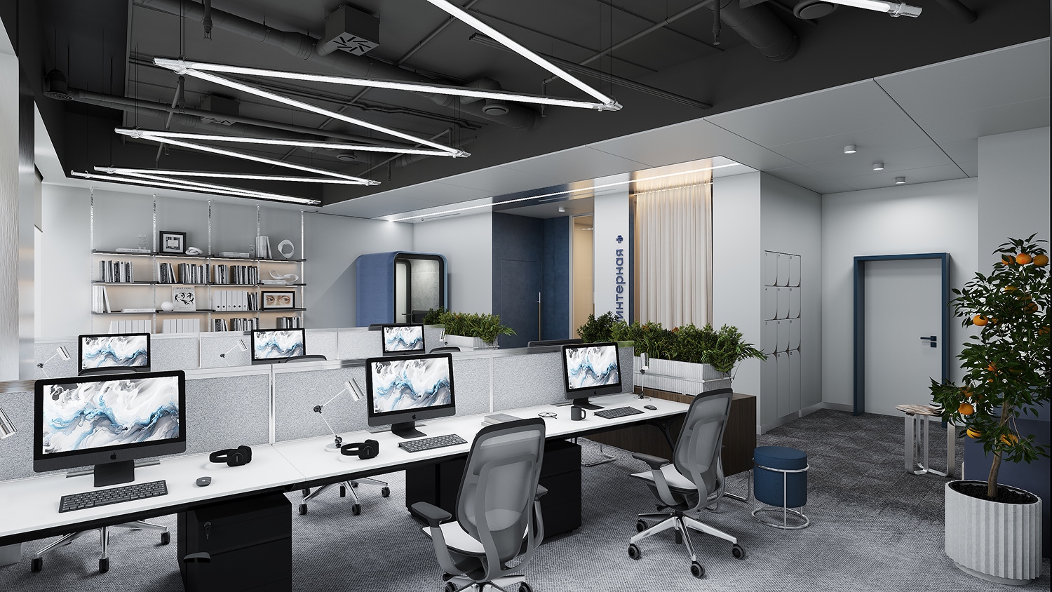 Система отопления поддерживает стабильную температуру в офисах, а управление микроклиматом через процессоры и датчики исключает утечки тепла и ненужную работу кондиционеров.