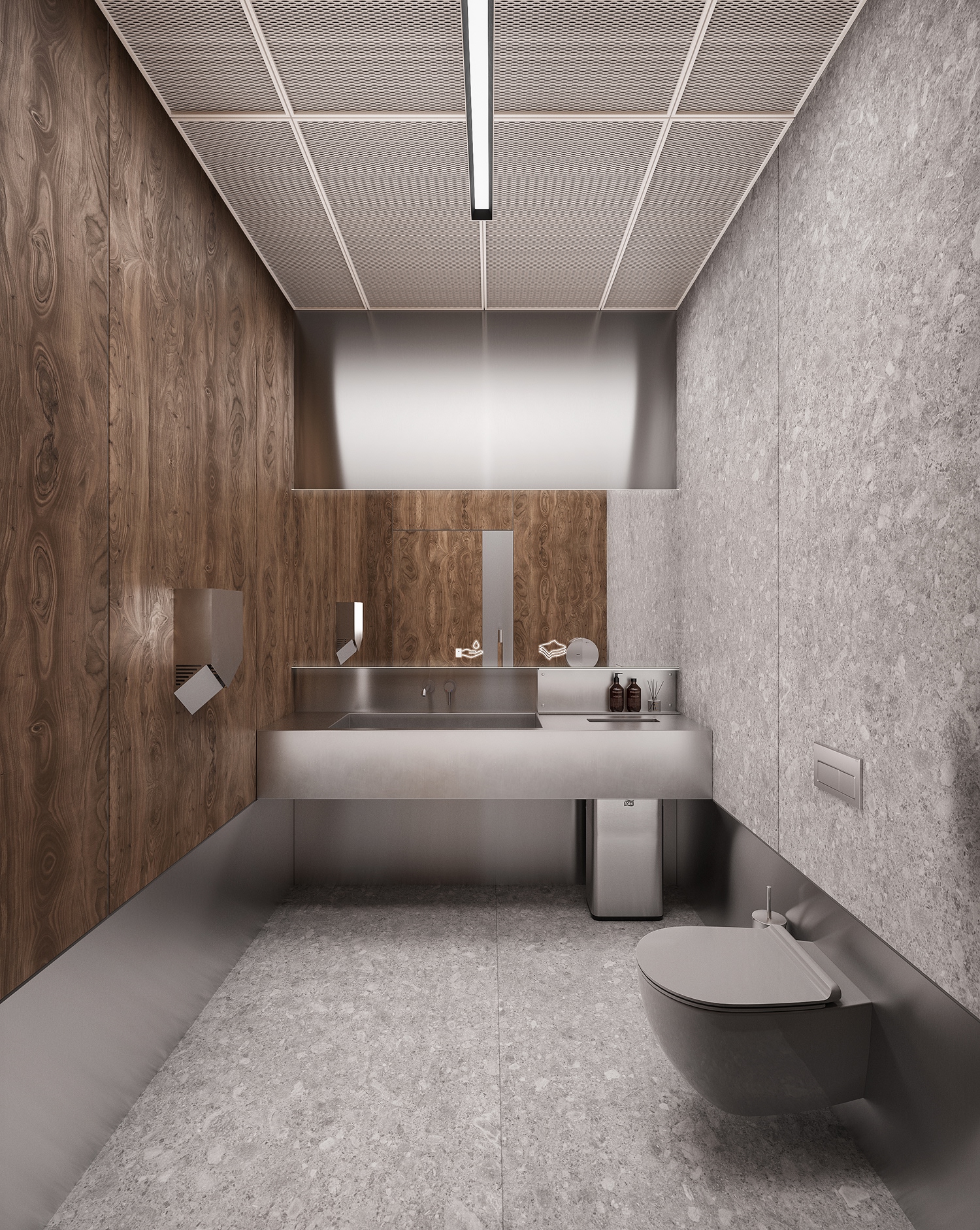 Близость к МЦД стала центральной идеей концепции. Форма здания, материалы и благоустройство территории связаны с железнодорожной эстетикой.