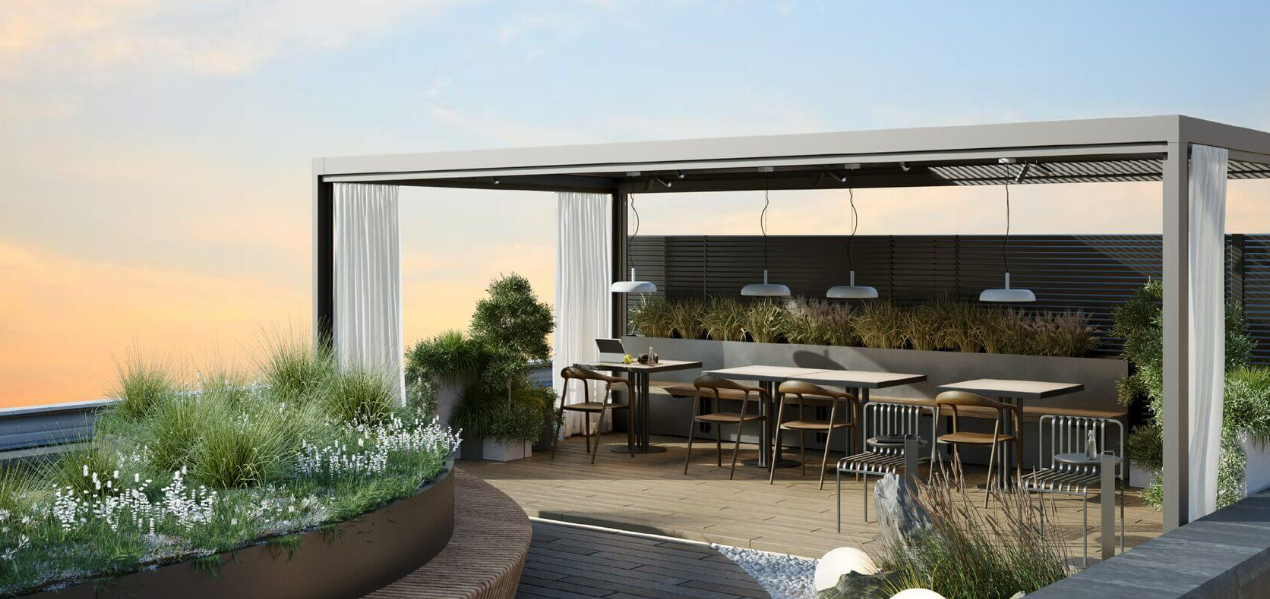 Эксплуатируемая кровля: открытая терраса, доступная для всех сотрудников и гостей бизнес-центра.