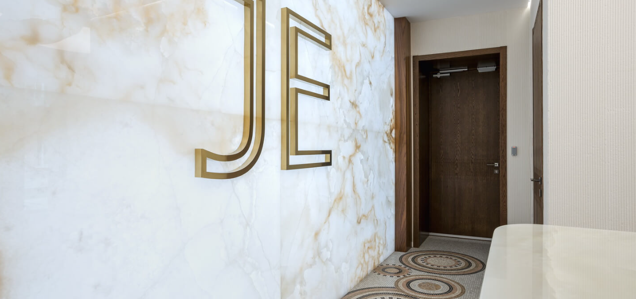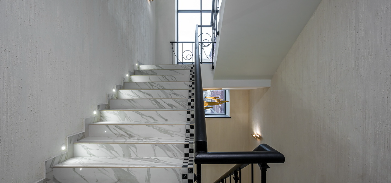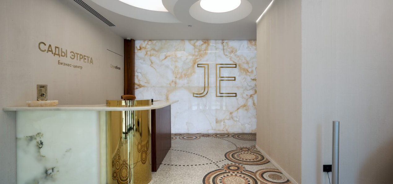 Уникальная дизайнерская концепция и использование дорогостоящих материалов: натуральный камень, древесина, латунь и металл. Бизнес-центр способен претендовать на звание современного произведения искусства.