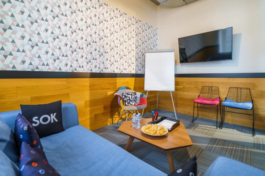 - Собственный кофе-поинт и отдельную переговорную с звукопоглощающими панелями;