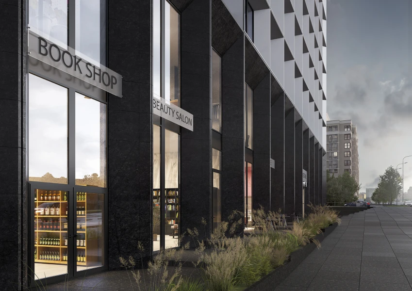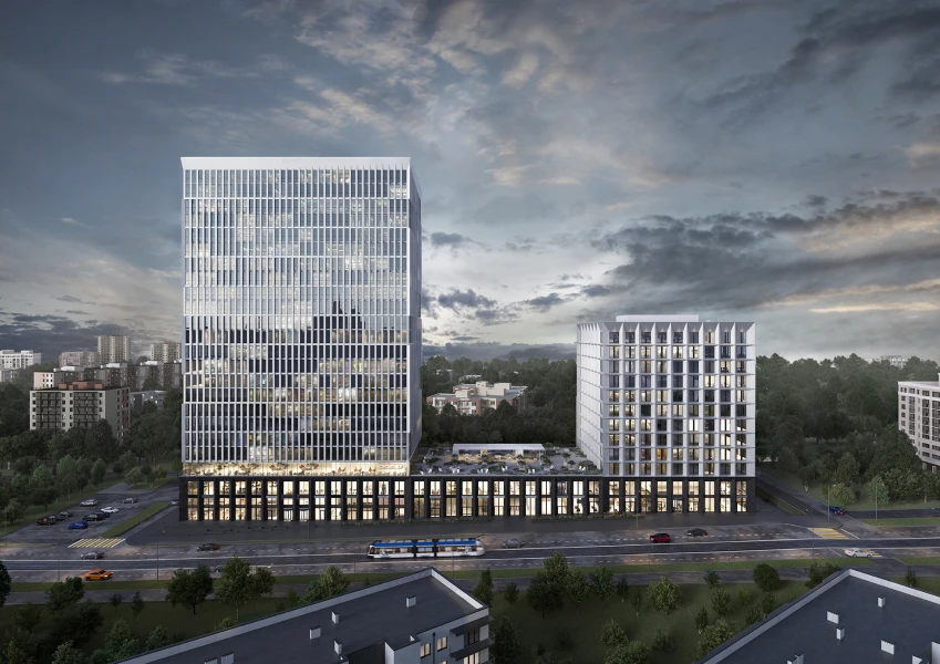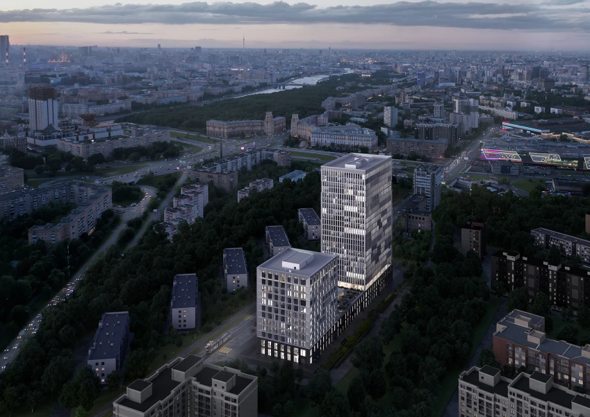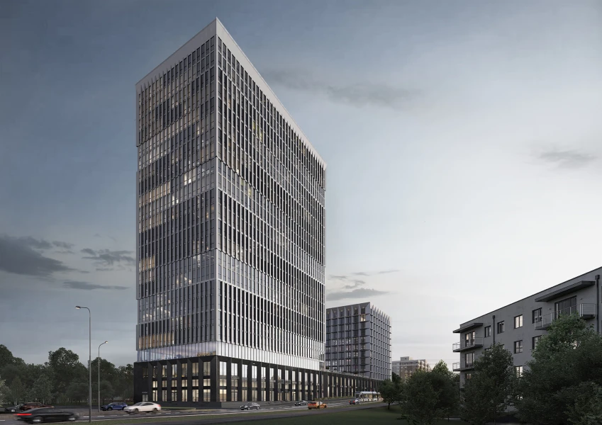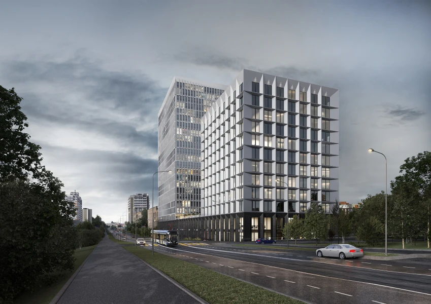 Архитектура от бюро WALL.Объект представляет собой две современные офисные башни: клубная 12-этажная башня S и 23-этажная башня L, которые объединены функциональным стилобатом, где предусмотрена собственная развитая инфраструктура: кафе, рестораны, столовая для сотрудников, аптеки, фитнес-студия, банкоматы.
