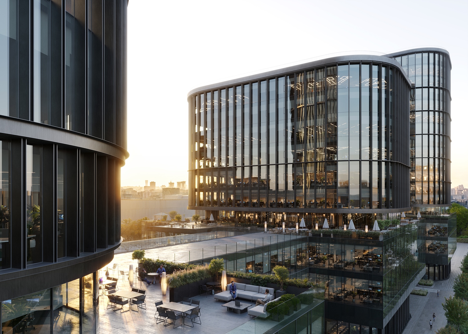 Премиальный офисный квартал реализуется в концепции Healthybuilding: улучшенные системы вентиляции, круглогодичное кондиционирование, многоступенчатая система очистки воздуха и биофильный дизайн.