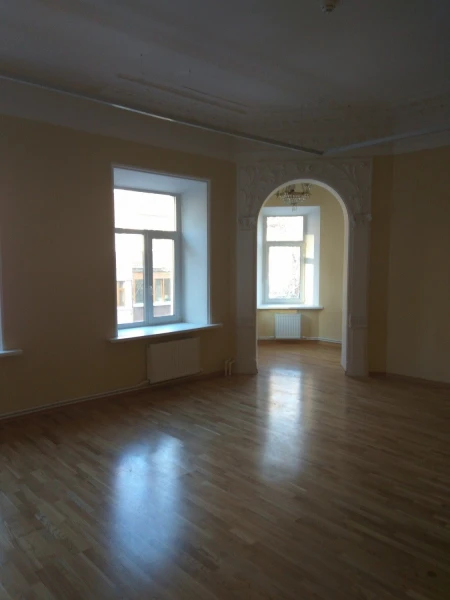 Здание включает три жилых этажа, чердак, надстройку и цоколь. Внутренние пространства сохраняют и восстанавливают старинные лепные работы на потолках. Выдержанная кабинетно-зальная планировка позволяет реализовать множество проектов. Придомовая территория предлагает достаточно места: до 6 автомобилей.