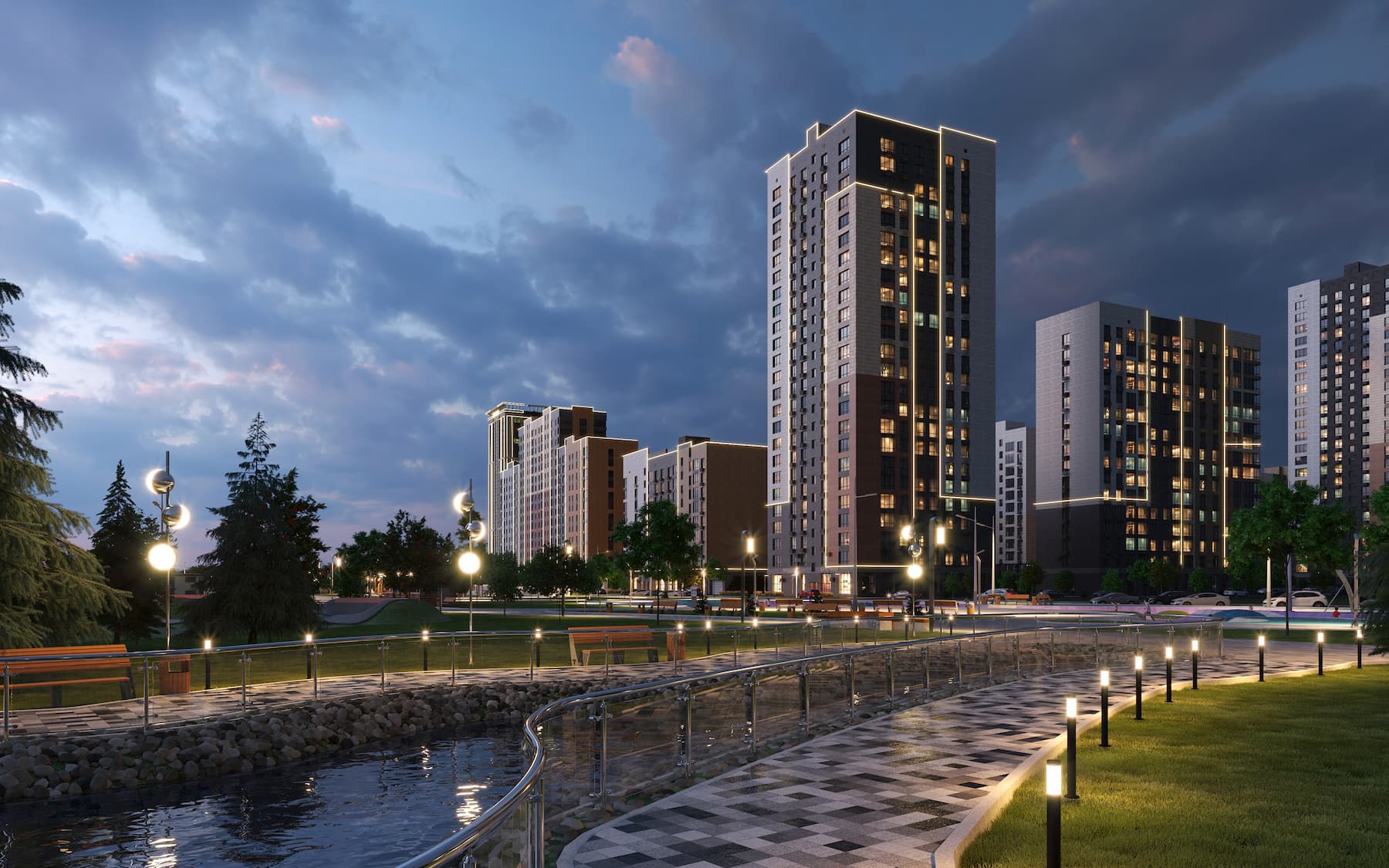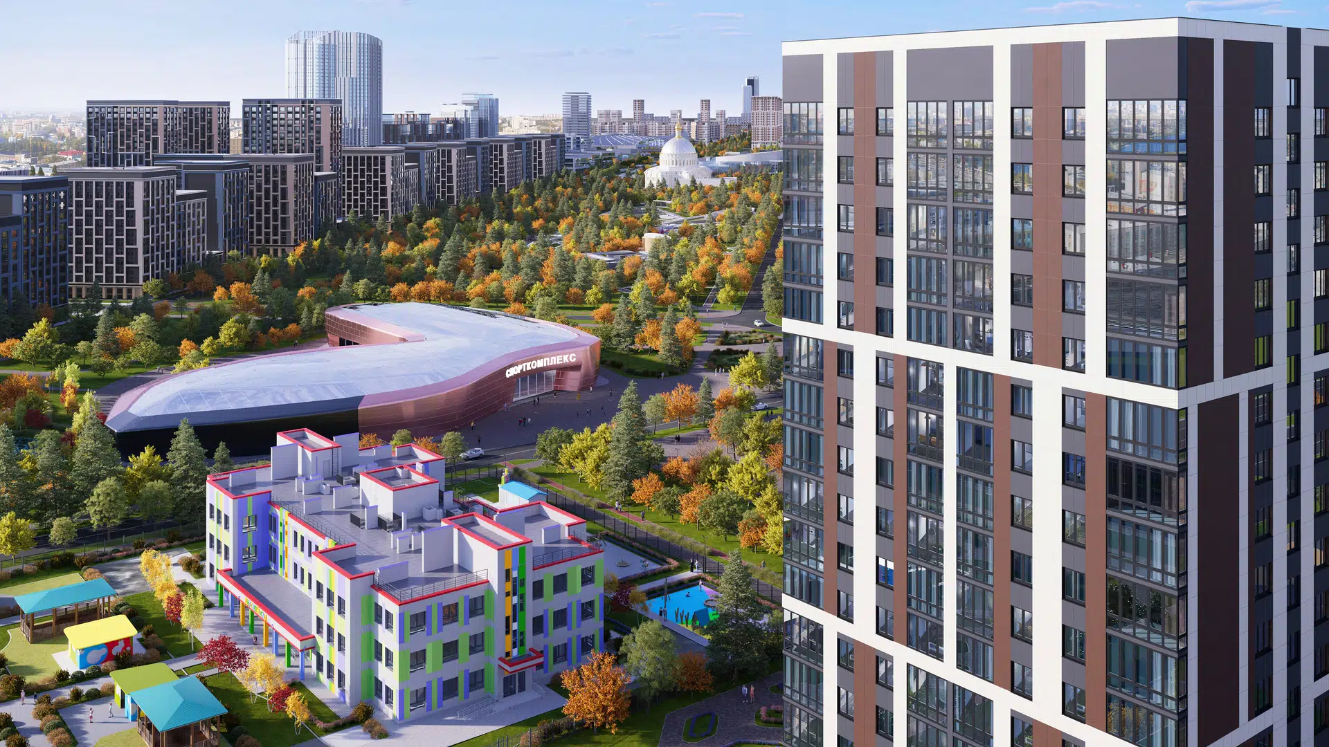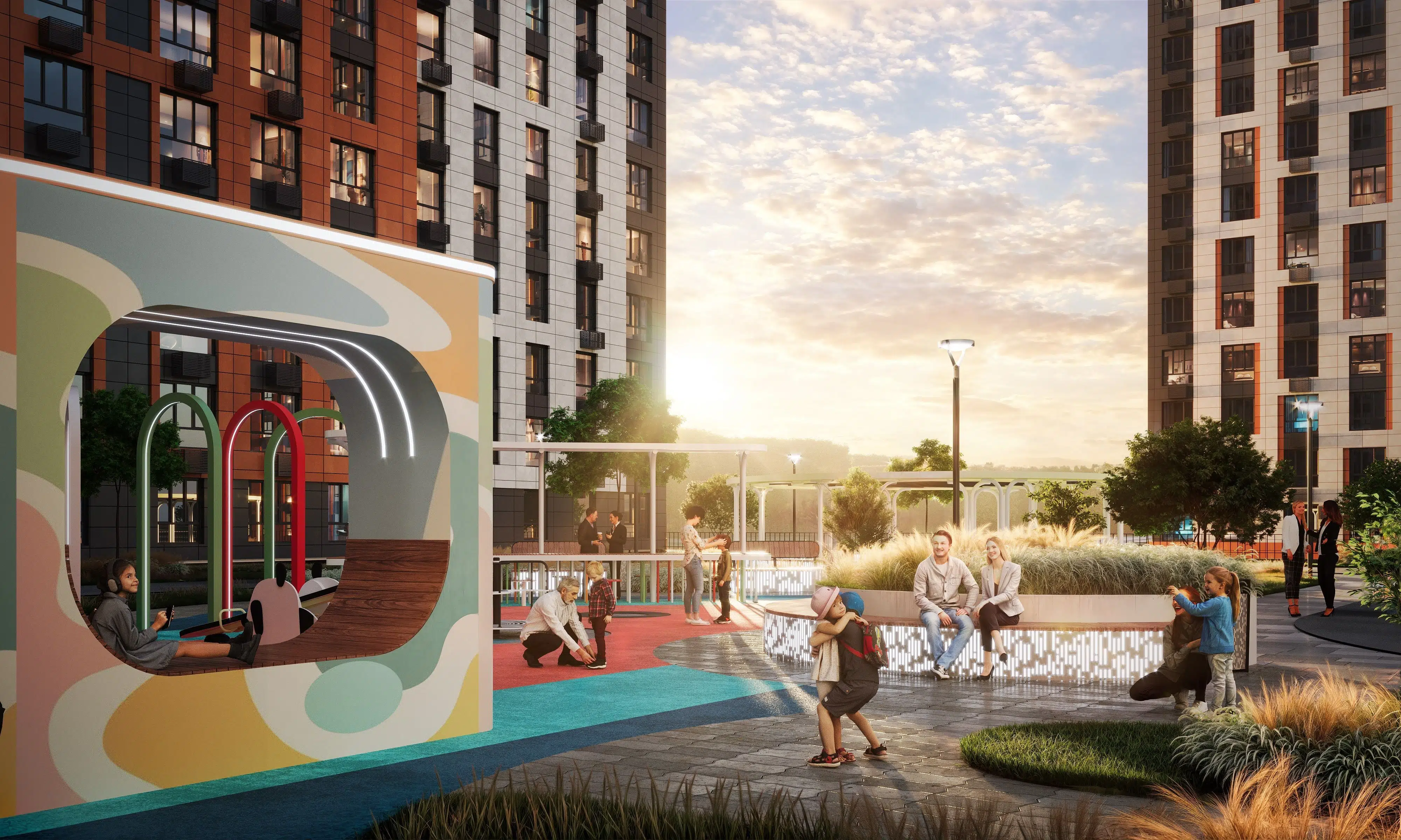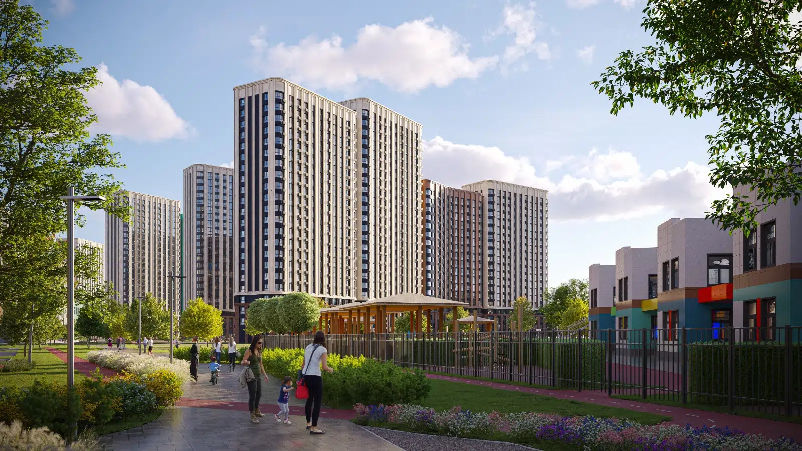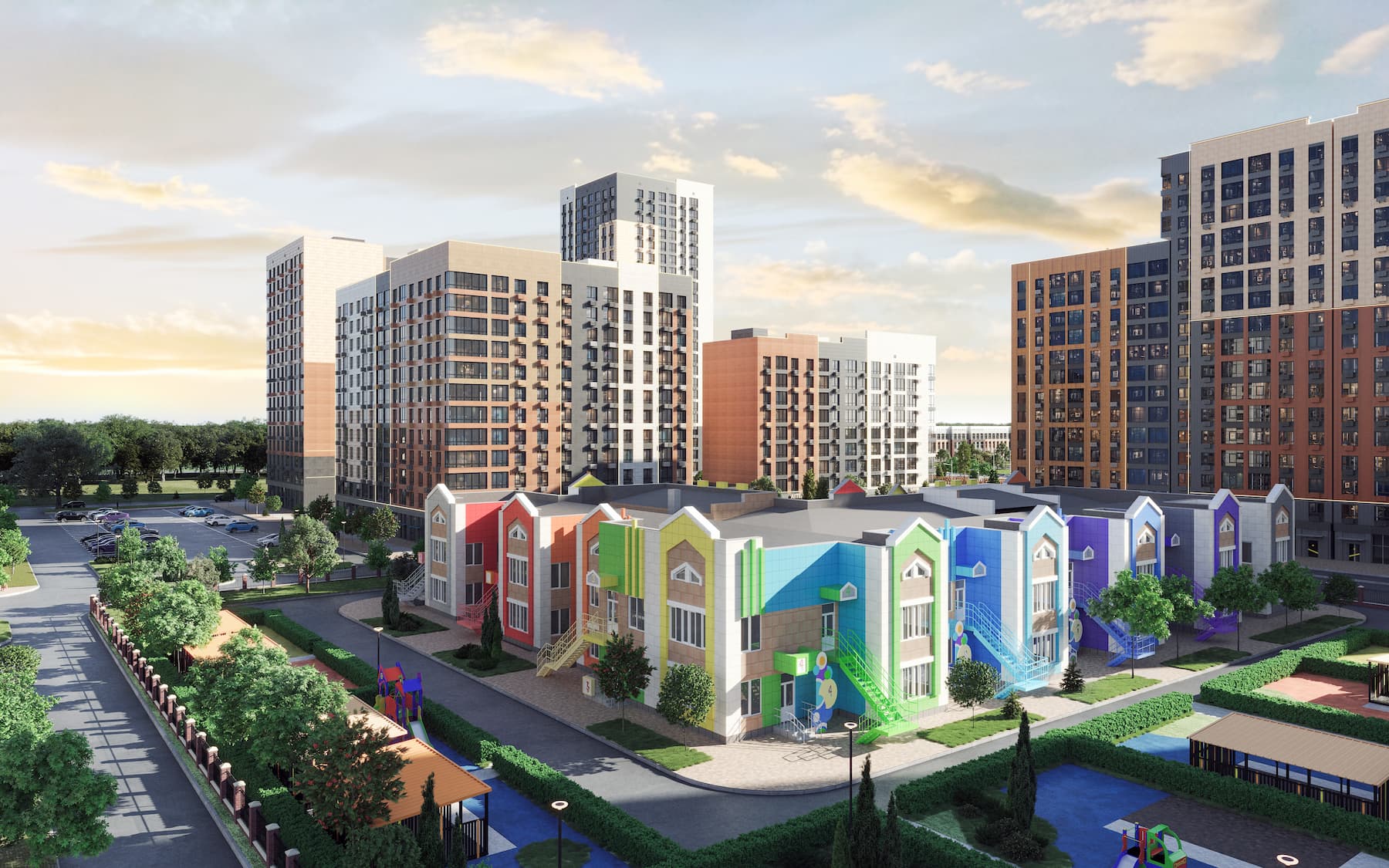 Комплексное создание комфортной среды в своих микрорайонах. Мы учитываем потребности жителей и делаем все, чтобы проекты соответствовали пожеланиям людей. Вместе с первыми домами сдаются детский сад, школа, благоустроенные дворы с детскими и спортивными площадками.