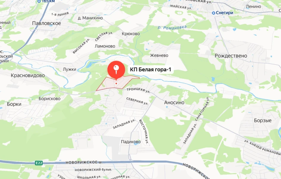 Коттеджный поселок «Белая гора» расположен на 28 км Новорижского шоссе, в населенном пункте Аносино. Территория поселка с двух сторон граничит с лесным массивом. В непосредственной близости находится база отдыха с горнолыжным спуском, неподалеку – престижный санаторий. Поселок полностью построен и заселен. Проведены работы по освещению улиц, все дороги асфальтированы. Коммуникации в поселке магистральные, создана своя служба эксплуатации. Профессиональная охрана готова моментально отреагировать на внештатную ситуацию.