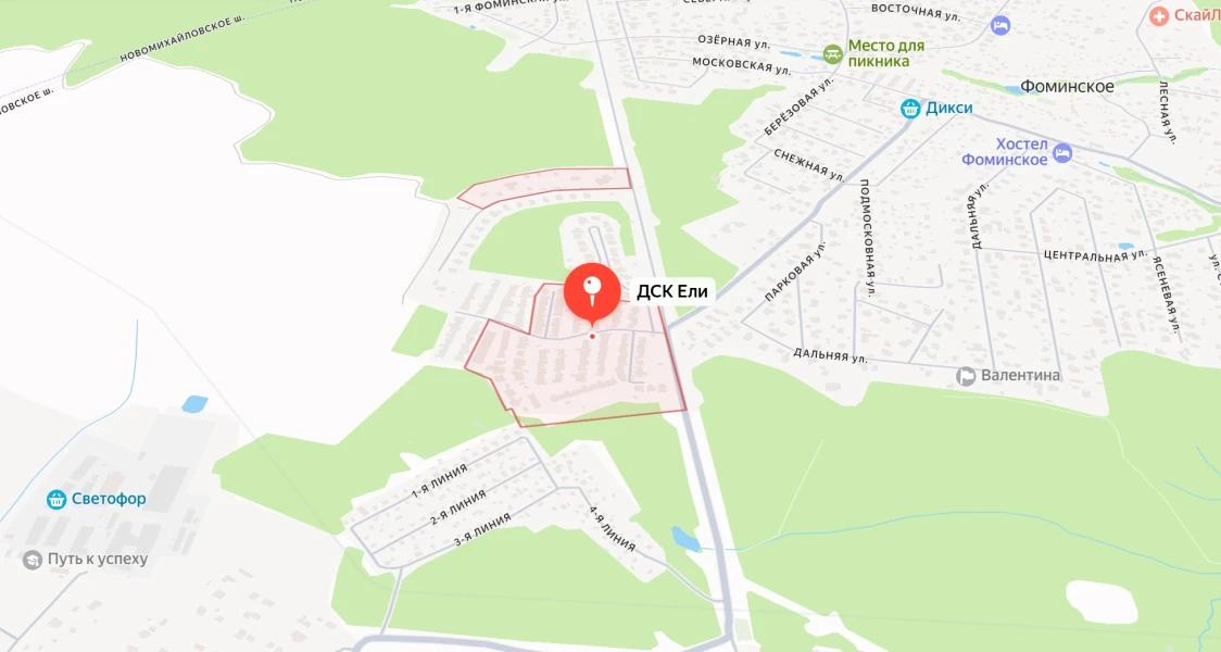Поселок с названием Ели разместился в 18 км по Калужскому шоссе. Всего в паре километрах протекает речка Десна, там же и находится песчаный пляж.