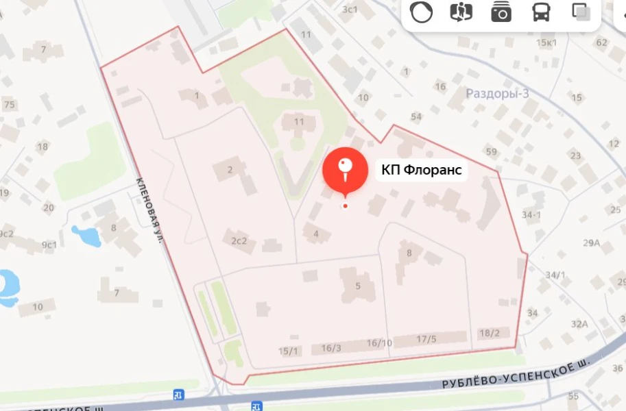 КП разместился в Одинцовском районе Московской области, всего в 5 км от МКАД по Рублёво‑Успенскому шоссе, на границе с деревней Раздоры. Это делает его максимально удобным для поездок в Москву и обратно.