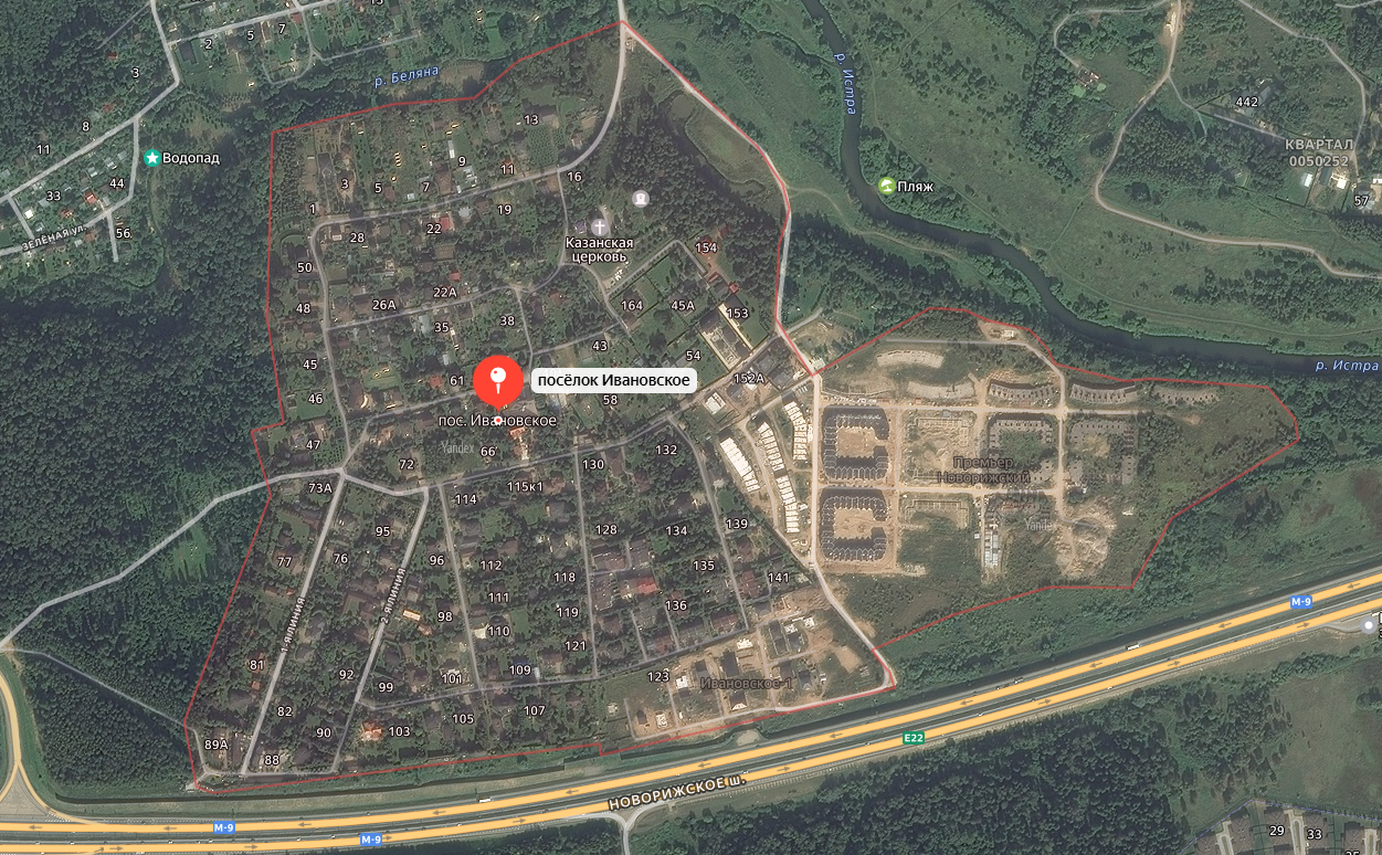 Коттеджный посёлок Ивановское находится в очень удачном месте: всего в 19 км от Московской кольцевой дороги по Новорижскому шоссе, вдали от крупных транспортных магистралей и вредных производств. таким образом здесь удалось совместить прекрасную транспортную доступность и великолепную экологическую обстановку.