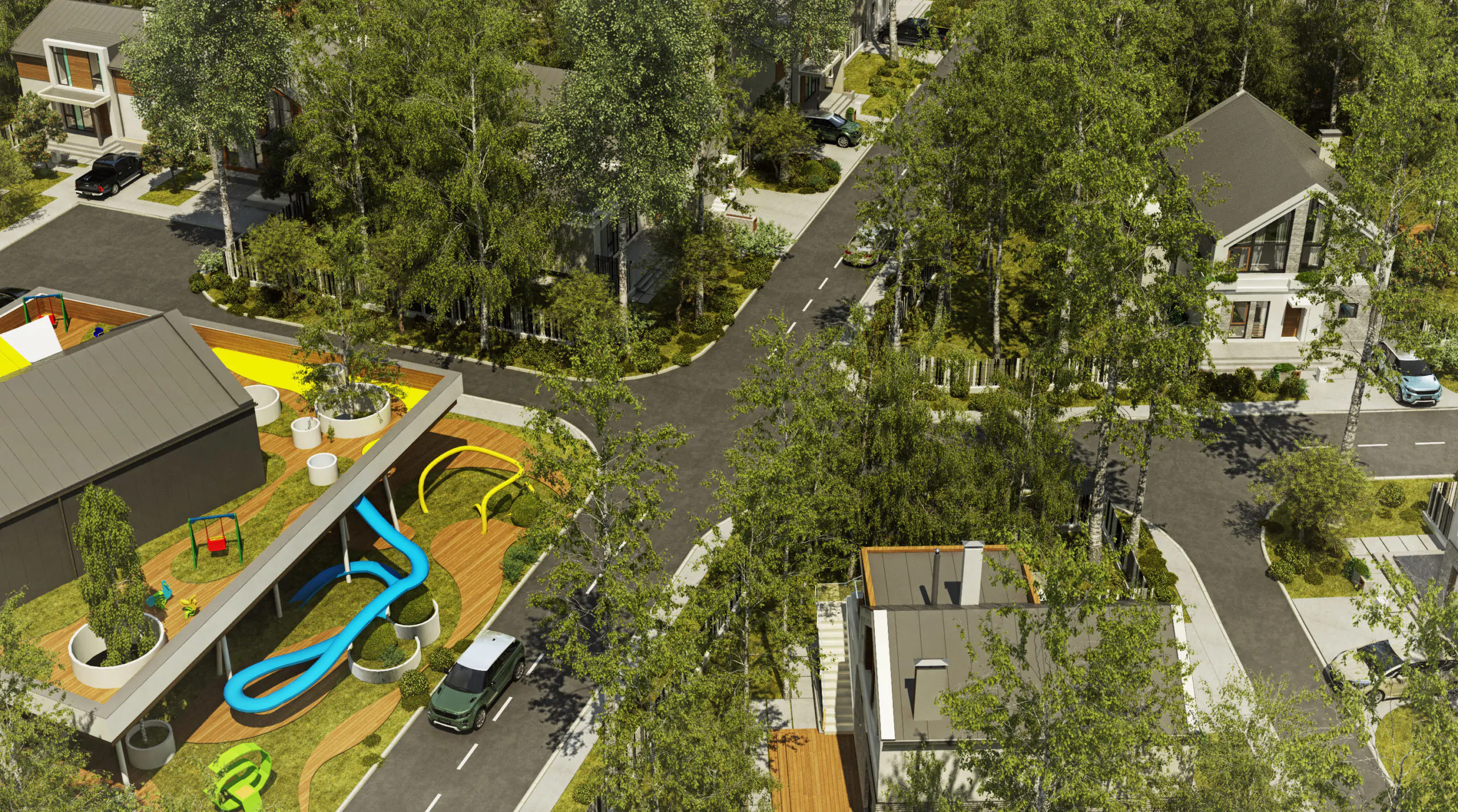 В посёлке есть детские площадки для малышей и юных жителей разного возраста. Все детские пространства необычные, интересные и стилизованные.