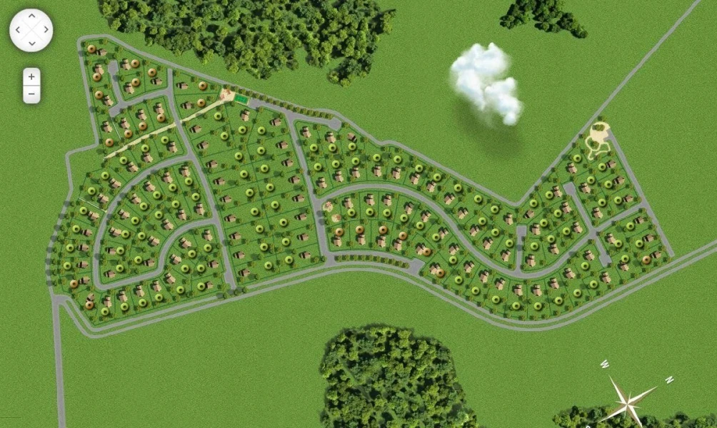 Посёлок состоит из 10 участков площадью от 130 до 500 соток, предназначенных для самостоятельного освоения и использования, застройки и продажи. Участки продаются мелким оптом.
