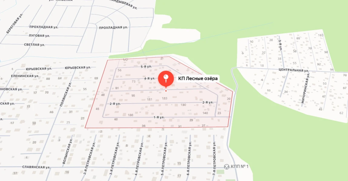Коттеджный поселок Лесные озера расположен в деревне Большое Петровское, в муниципальном округе Чехов, в Московской области.