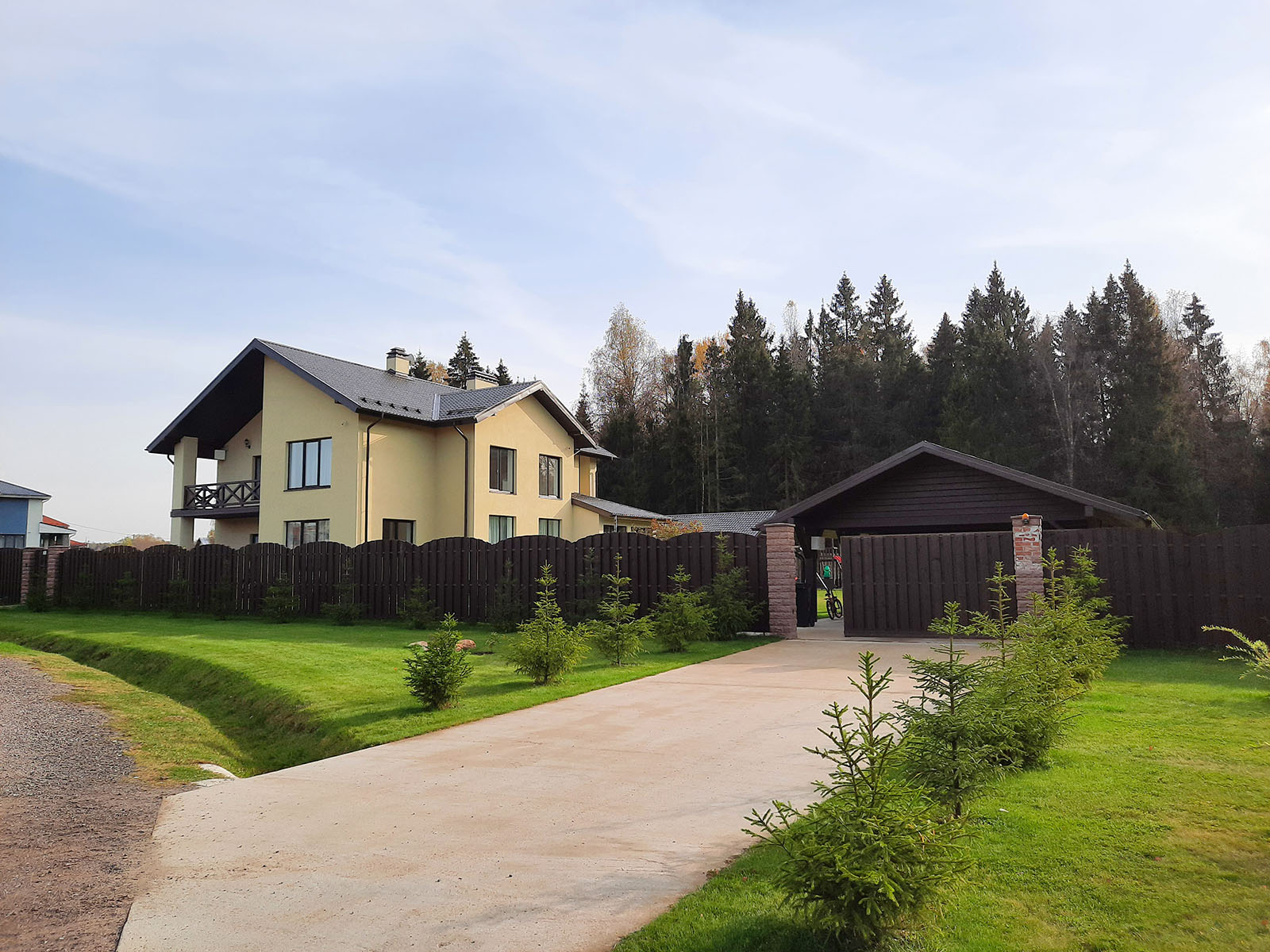 Безопасность, исключающая свободный доступ посторонним на территорию коттеджного поселка: поселок обнесен забором высотой 2,8 м по периметру, проезд – только через КПП;