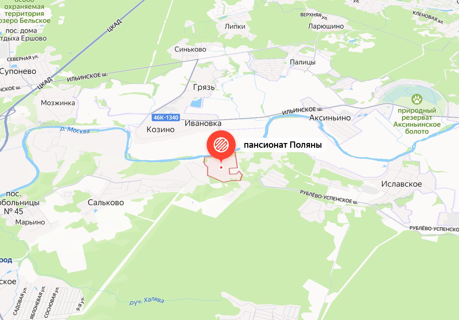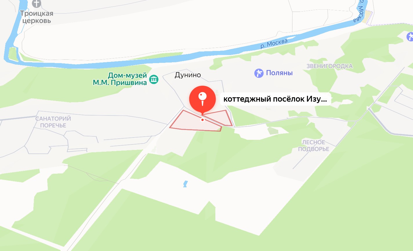 В 28 км от МКАД по Рублево-Успенскому шоссе, на территории знаменитого пансионата «Поляны», на участке площадью 2 Га расположилась коттеджная застройка, состоящая из 17 домовладений.