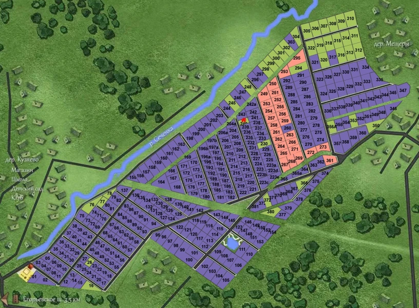 Поселок Першино Парк - расположен в часе езды от МКАД по Новорязанскому шоссе. Поселок имеет все необходимые для комфортного проживания элементы инфраструктуры, включая водоем (река Ольховка), располагающийся на границе территории поселка. Электричество разведедено по поселку, технологическое присоединение к каждому участку осуществляется через АО "Мособлэнерго". Ширина дорог 9 метров (мелкая асфальтовая крошка).
