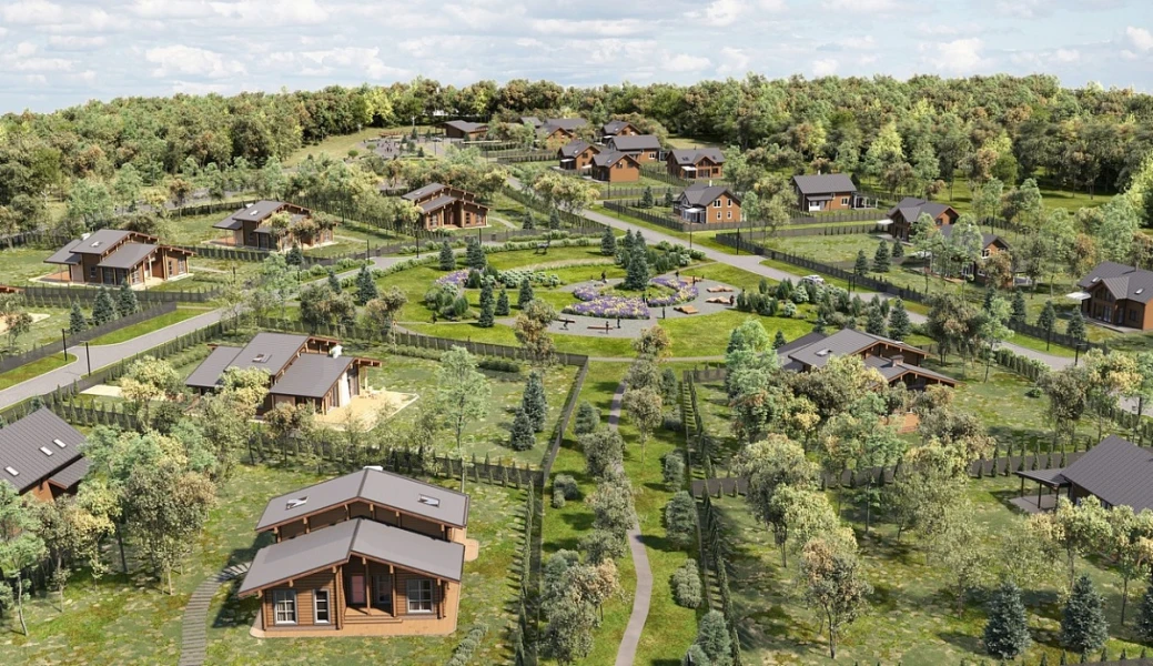 Поселок выполнен в едином архитектурном стиле. Наши дизайнеры в оформлении постарались создать атмосферу тепла и уюта. В собственном лесу предусмотрены прогулочные зоны вдоль реки, спортивная площадка и пешеходные дорожки.
