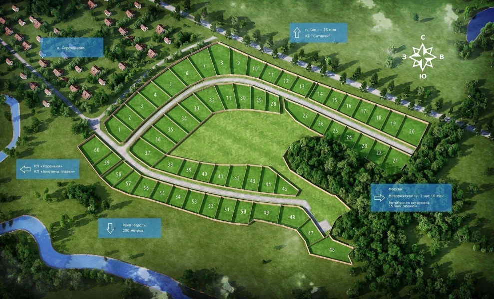 КПоттеджный поселок Скрепящево расположен в 85 км от МКАД по Ленинграскому шоссе. В поселке представлены участки площадью от 7 соток, предлагаются с уже готовыми коммуникациями. Обязательного подряда нет. Застройщиком является компания ЗемАктив.