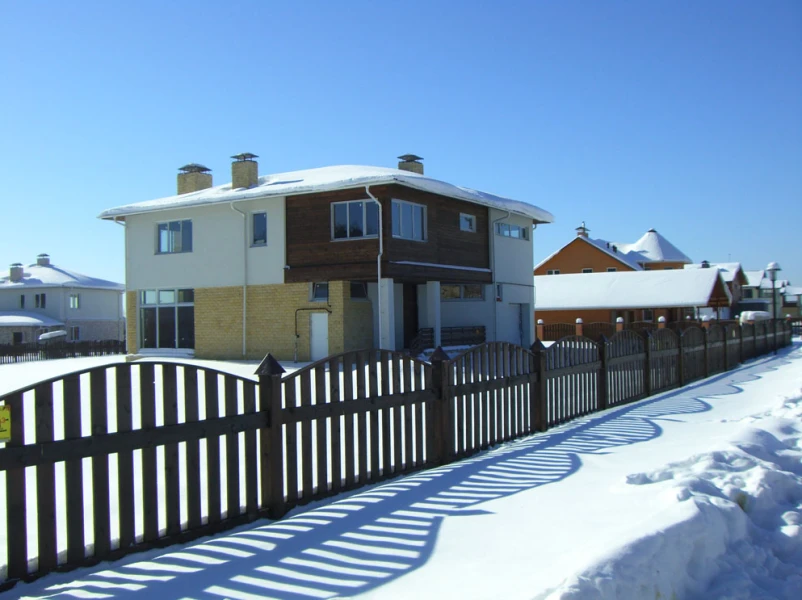 Поселок клубного типа: 40 домов на участке 10,3 га, имеет свой неповторимый облик. Дома выдержаны в едином стиле и притягивают взгляд гармоничным сочетанием используемых материалов: много стекла, много дерева, камня, много оштукатуренных поверхностей.