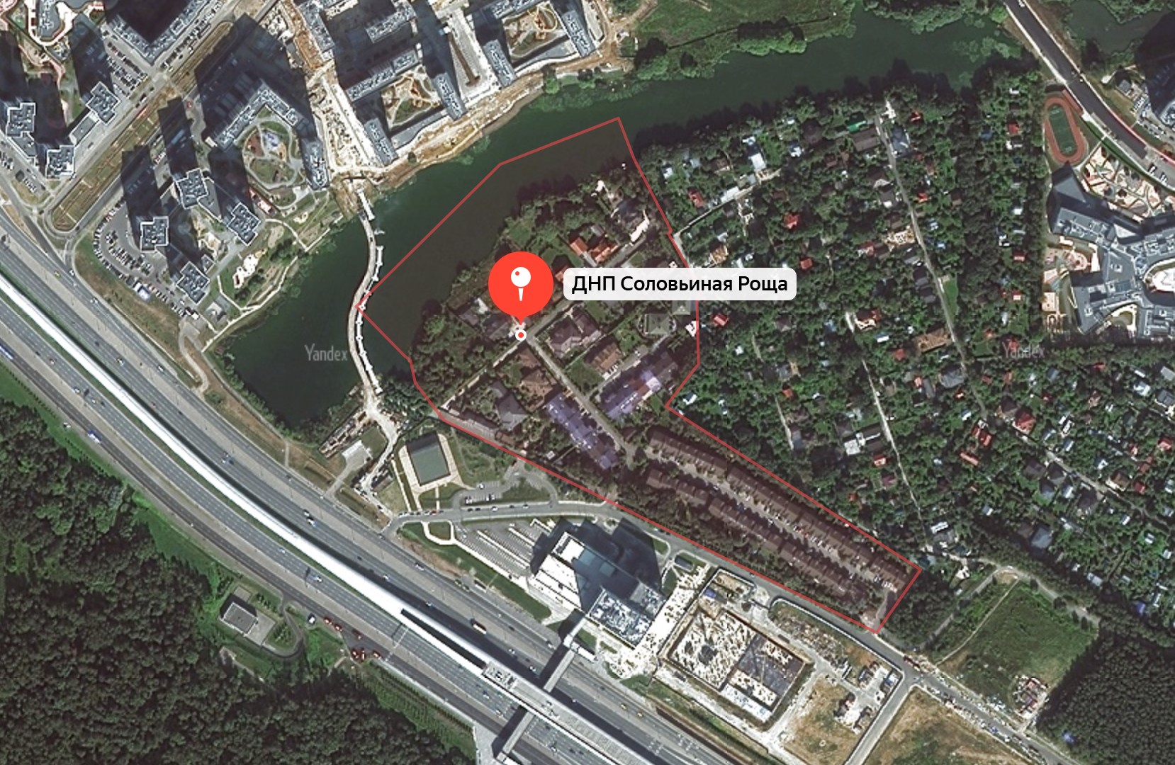 Площадь территории коттеджного поселка «Соловьиная роща» составляет семь с половиной гектаров. Двенадцать участков объекта отведены под индивидуальные дома – половина из них располагается на берегу озера. Эти дома возводились по проектам их владельцев. Кроме того, здесь 64 секции таунхаусов, которые составляют 9 блокированных 2-этажных домов с мансардой. В загородном комплексе функционируют все коммуникационные системы.