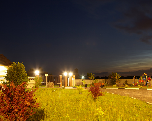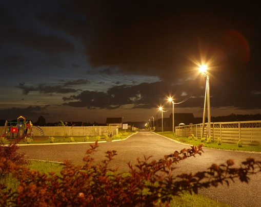 Уличное освещение по всему посёлку делает передвижение безопасным, а территорию — уютной.