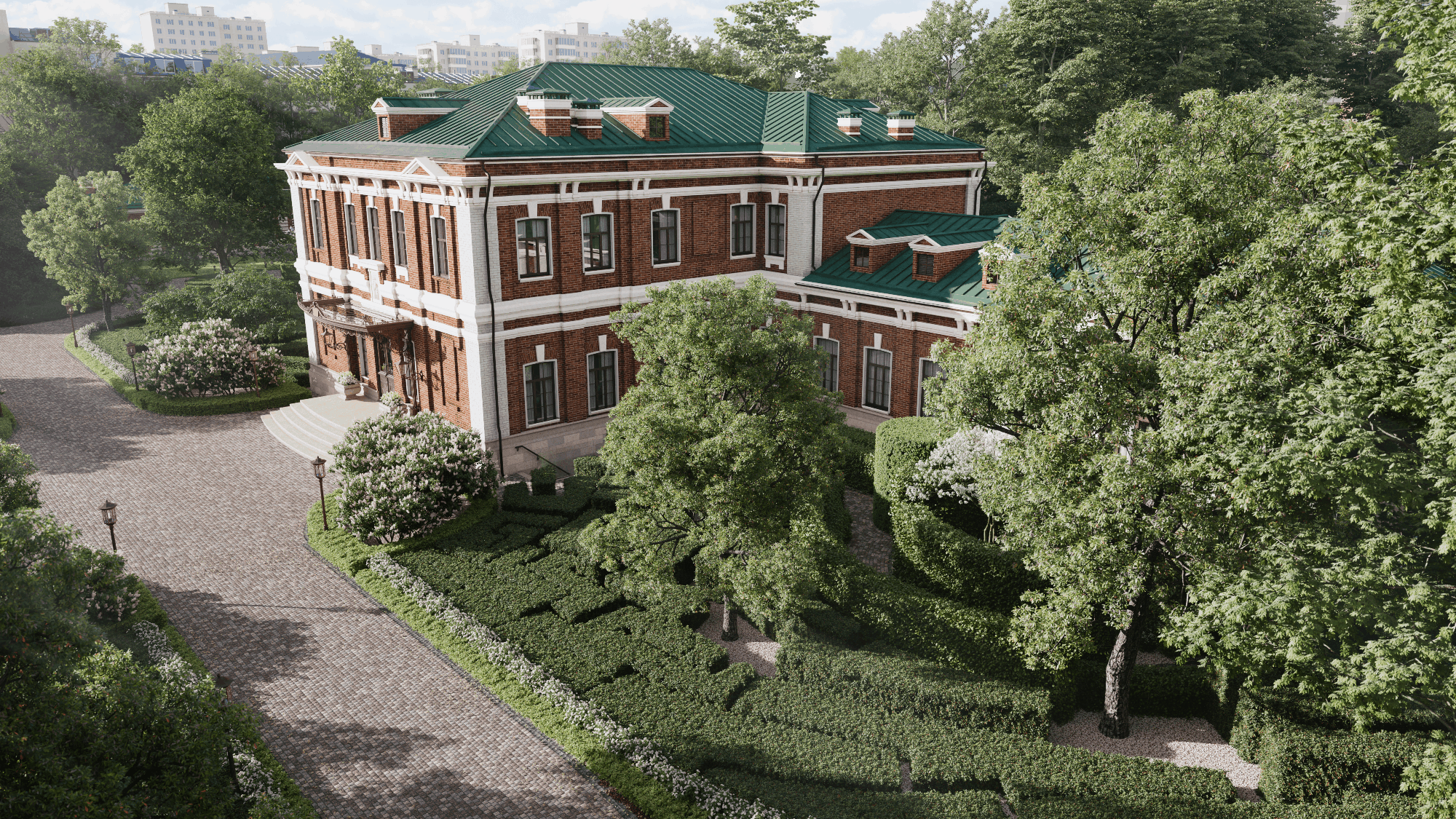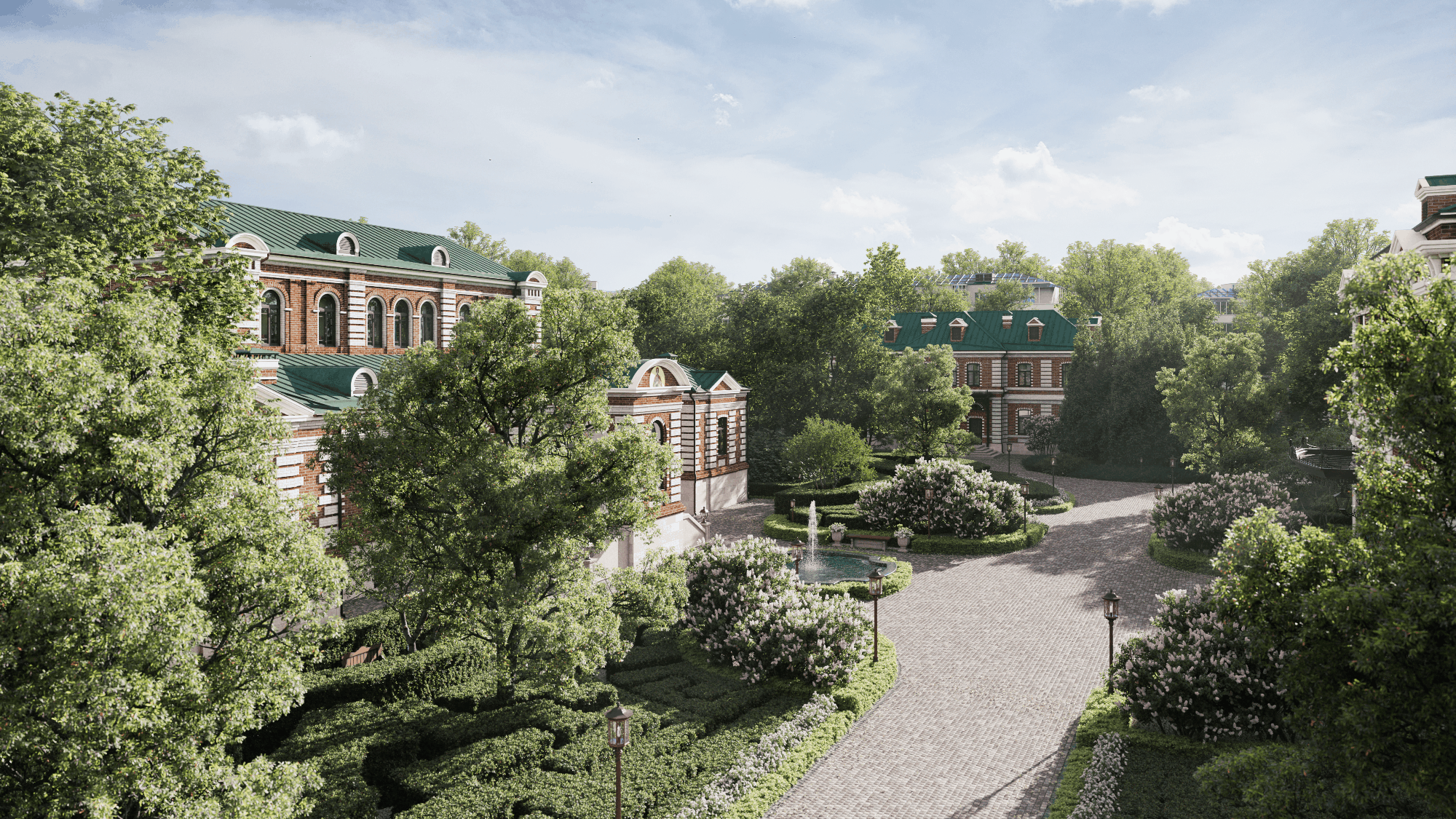 Проект включает четыре исторических особняка общей площадью 4504 кв. м, соединённых подземной галереей, и красивый ландшафтный парк в собственности, который