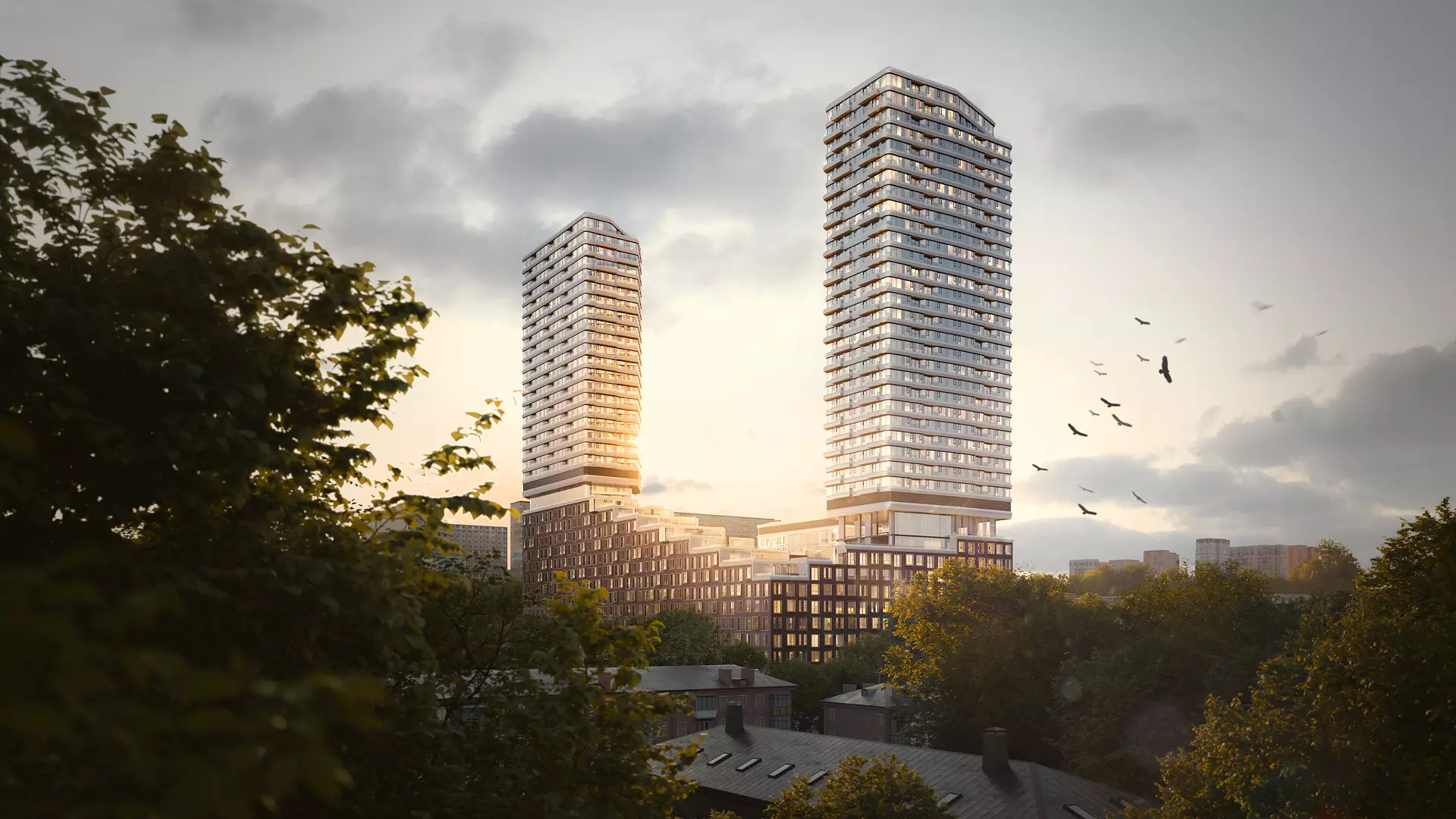 Семейный проект, который обращается к истории места, картинам жизни профессоров МГУ в их светлых сталинках и образам нью-йоркских небоскребов 60-х. Когда мы над ним работали, задавались вопросом, как сделать экстерьеры суперсовременными, а в планировках сохранить все лучшее из исторических примеров.