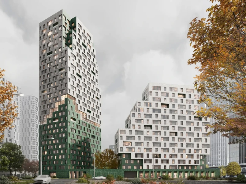Современная архитектура STONE Rise интегрирована в контекст исторического района Москвы. Исключительно редкое предложение для района — уникальная современная архитектура с балконами и террасами, с продуманной инфраструктурой и благоустройством. Три корпуса разной высоты (14, 16 и 28 этажей) формируют выразительный силуэт комплекса. Фасады домов выполнены из бетонной плитки серого и изумрудного оттенков, а также металлических кассет. Вход в комплекс осуществляется через единое гранд-лобби. Здесь будут расположены кофейня, почты с локерами, а также комфортная гостиная с мягкой мебелью. В каждом корпусе расположены лаунж-зоны с естественным освещением в зоне лифтов. Парк «зеленая река» находится прямо под окнами. Архитектурный проект разработан московским бюро WALL, известным работой над премиальными жилыми и офисными зданиями.
