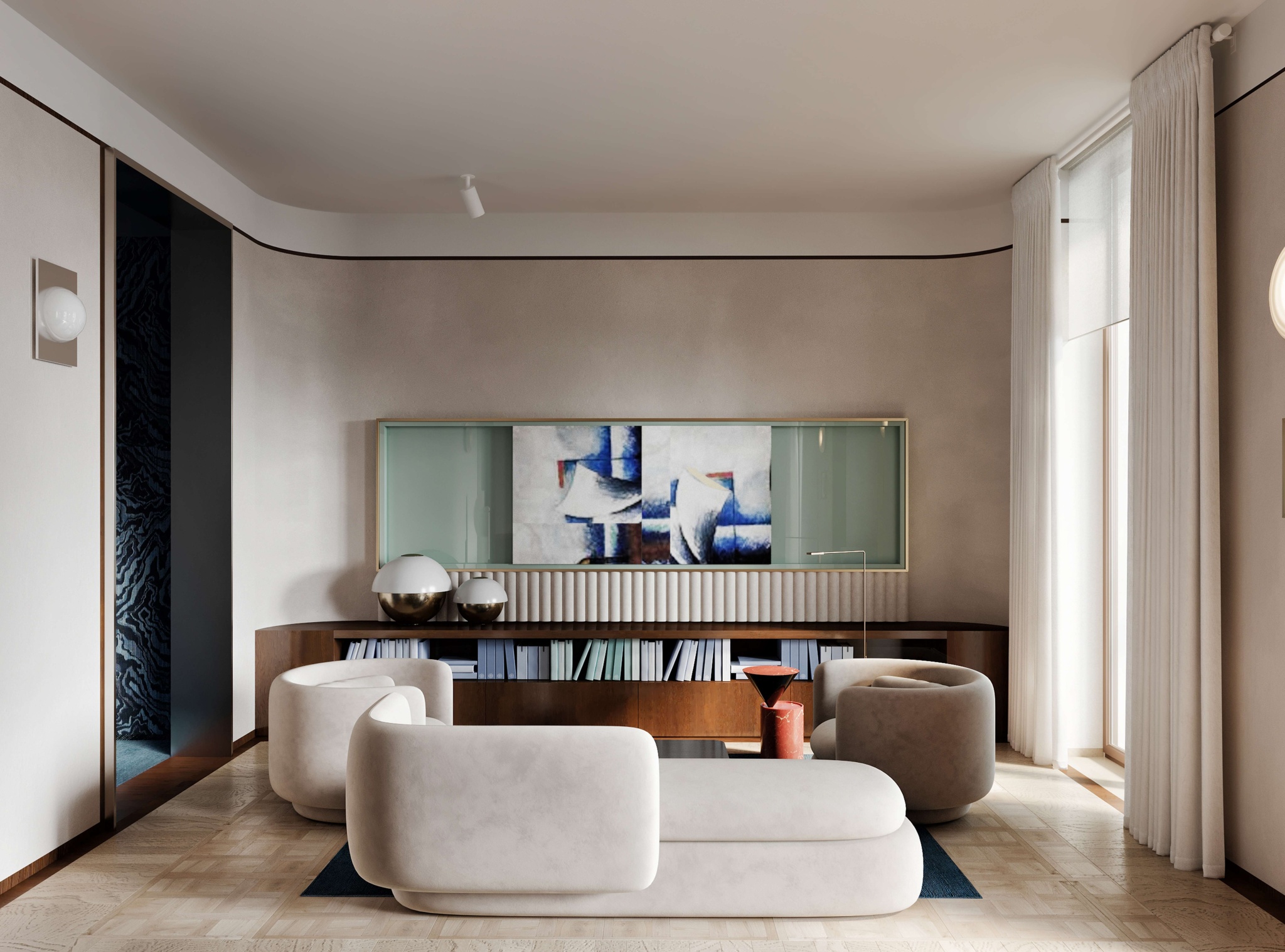 Каждая резиденция в Доме Соболева проектировалась, как персональный архитектурный сценарий. Планировка диктуется ритмом фасадов, эркерами, террасами и светом, которые работают как часть композиции. Здесь все подчинено идее ясного, сбалансированного пространства.