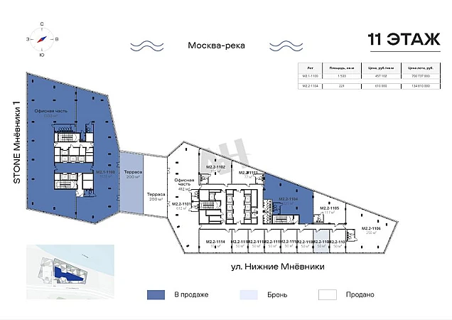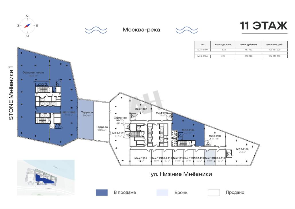 Лот №928844 Предлагается к продаже офисный блок 1533 м2 на 11-м этаже бизнес-центра STONE Мнёвники — это первый офисный