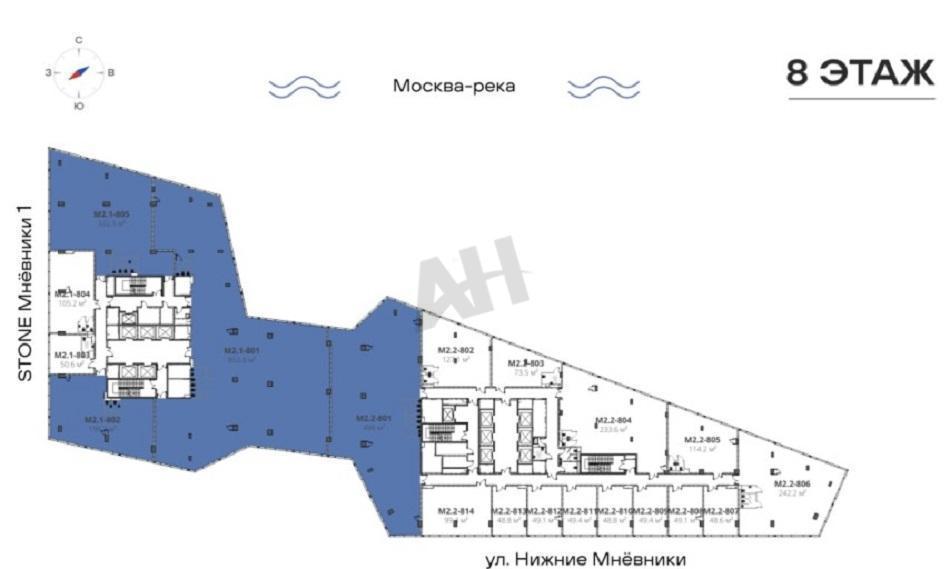 Лот №928786 Предлагается к продаже офисный блок 322.5 м2 на 8-м этаже бизнес-центра STONE Мнёвники — это первый офисный
