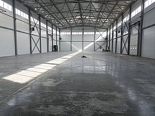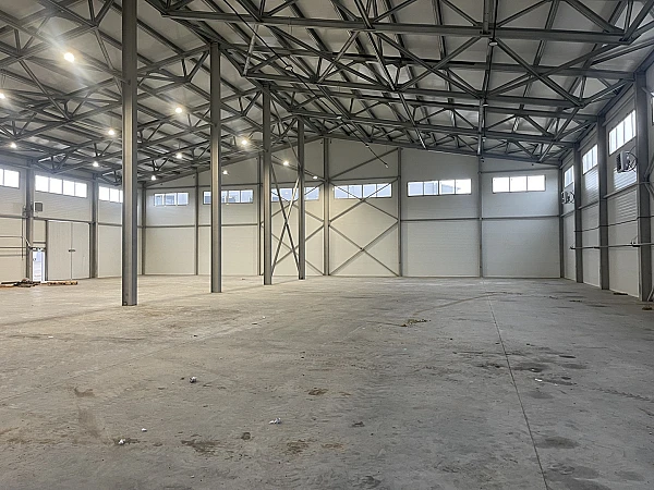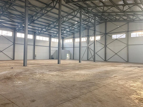 Каркас здания выполнен из металлических колонн; Шаг между колоннами 18 м; Двускатная крыша;