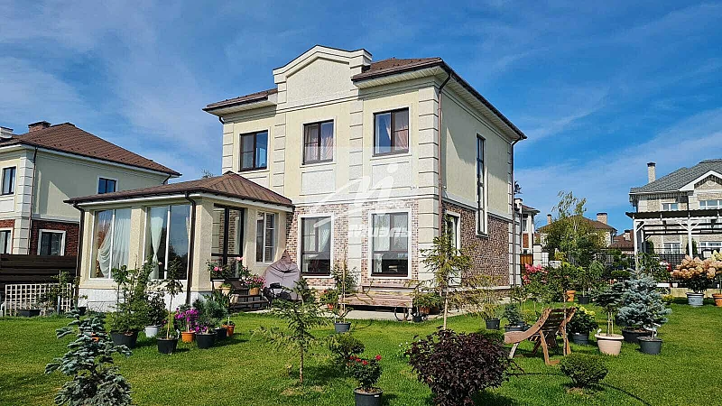 Все коммуникации центральные. Газовое центральное отопление. Дом с отделкой, меблированный итальянской мебелью, полностью готов к проживанию. В доме выполнен качественный ремонт из дорогих импортных материалов. Планировка дома: 1-ый этаж: объединенная зона гостиная-кухня, столовая, зимний сад с выходом на улицу, кабинет, санузел, котельная, холл. 2-ой этаж: 3 изолированных спальни, санузел. Участок 8 соток, ровный, прямоугольной формы, обнесён по периметру забором на бетонном основании. Участок ухожен, посажены растения, уложен рулонный газон, есть маленькая теплица и хозблок. Сделан дренаж по периметру участка и дома. Выведена поливочная система по всему участку. Так же есть навес с парковкой для автомобиля.