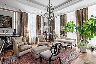 Эксклюзивный особняк площадью 1211 м2. Дом выполнен в классическом стиле с элементами Арт-деко. Выполнены декоративные элементы из лепнины и кованными аксессуарами. В доме установлена качественная брендовая мебель. Дом оборудован всей необходимой для качественной жизни загородом инженерией с умным управлением.