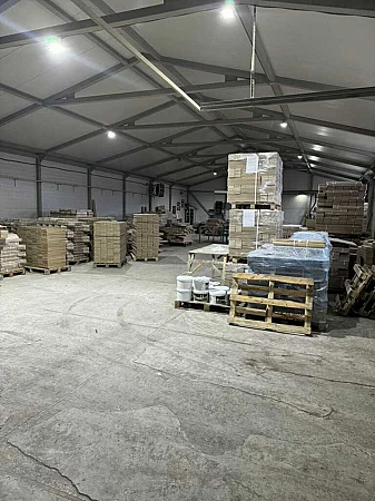 ==ЛОТ 221846 == ОТ СОБСТВЕННИКА, БЕЗ КОМИССИИ. Предлагается к продаже складской комплекс общей площадью 1350 м. кв. на первой линии Ленинградского шоссе в 40 км от МКАД. Комплекс состоит из четырех строений 360, 250, 250 и 460 м. кв. соответственно. Котельная 30 м. кв. Ворота везде 3, 5 м (возможность увеличения). Высота в коньке 8 метров. Комплекс располагается на двух участках 18 и 21 соток. Весь комплекс занимает действующее высокорентабельное производство напольных паркетных покрытий. Отопление производится на отходах от производства. При желании есть возможность подвести газ. Электрическая мощность - 150 кВт имеется возможность увелеличения до 600 Продажа складского комплекса осуществляется как пустых помещений, так и как готового действующего бизнеса с оборудованием. Цена продажи пустого склада на участке 0, 4 Га - 80 млн. руб. Если рассматривать как арендный бизнес, то рыночная цена аренды на теплый склад такой площади около 1-го млн. рублей.