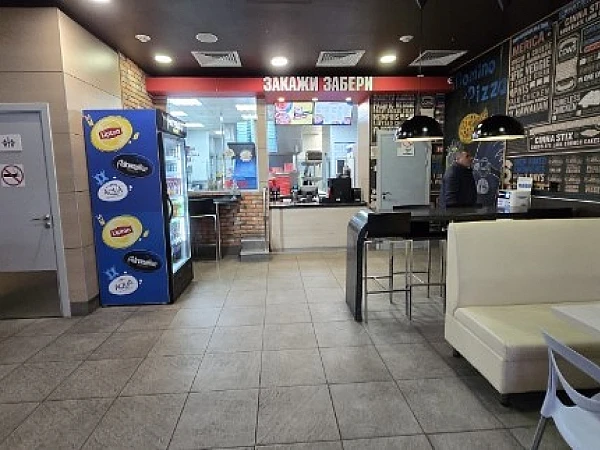 . Ранее располагалась пиццерия "Domino Pizza". Помещение располагается в центре жилого массива, рядом остановка общественного транспорта. Интенсивный автомобильный и пешеходный трафик вдоль помещения.