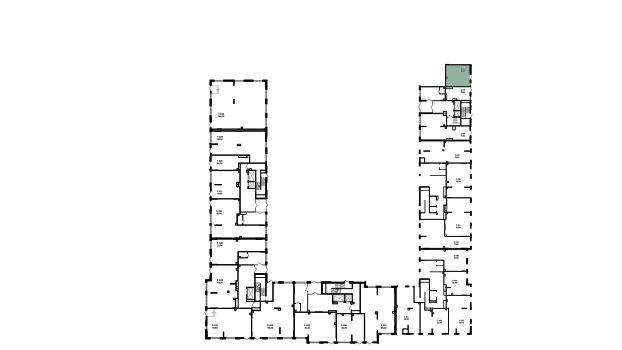 Площадь 19,1 кв.м (на плане - Блок №5), планировка открытая, высота потолка 3,6 м, центральный коммуникации, витринное остекление по фасаду.