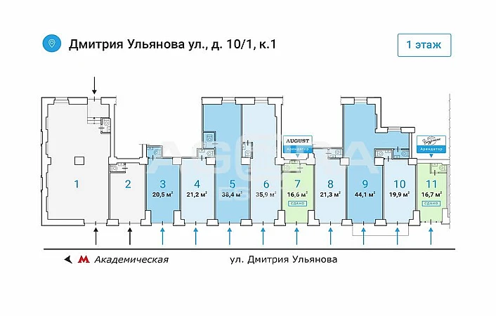 Помещение расположено у входа/выхода из метро Академическая. ЮЗАО.