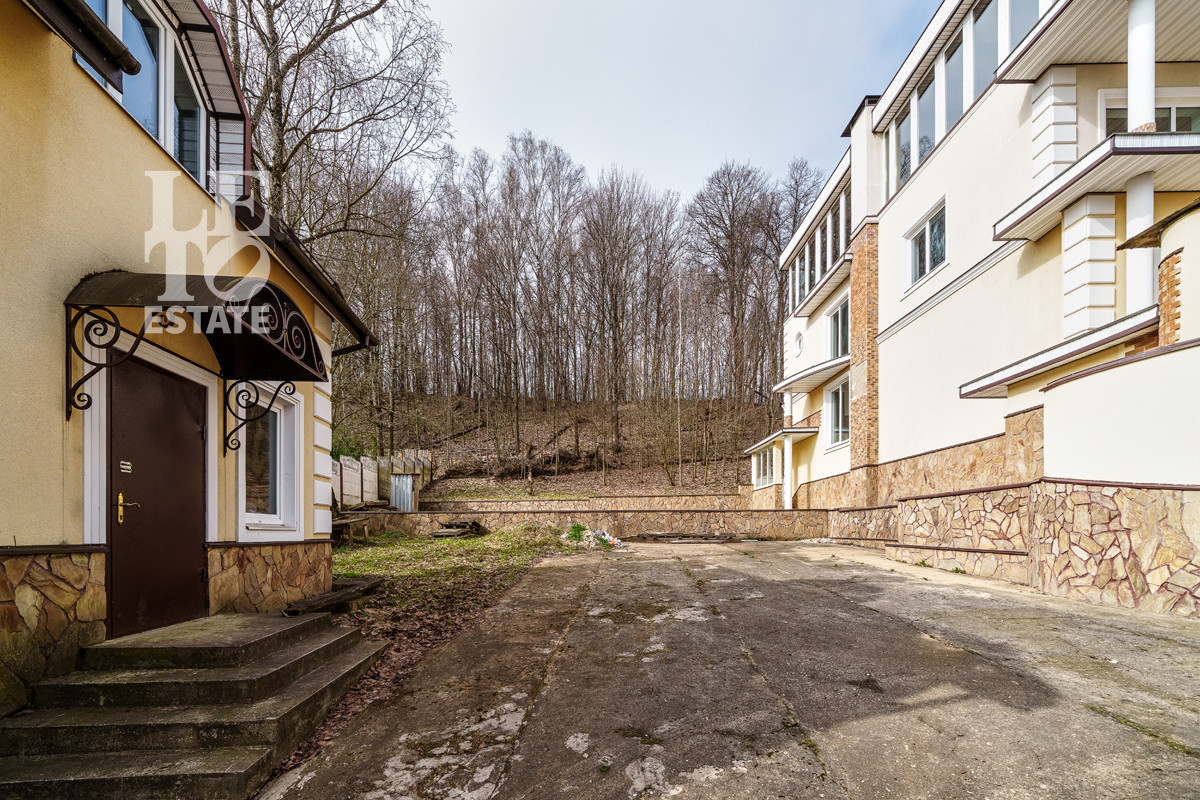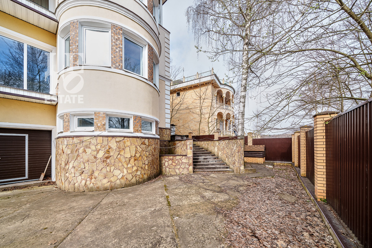 Дом расположен на прямоугольном ровном участке площадью 12 соток (фактически 16), вокруг дома сделана отмостка, выполнен дренаж дома и участка, залиты бетоном площадки для парковки авто. На участке также построен дом охраны (для гостей) площадью 60 кв.м.
