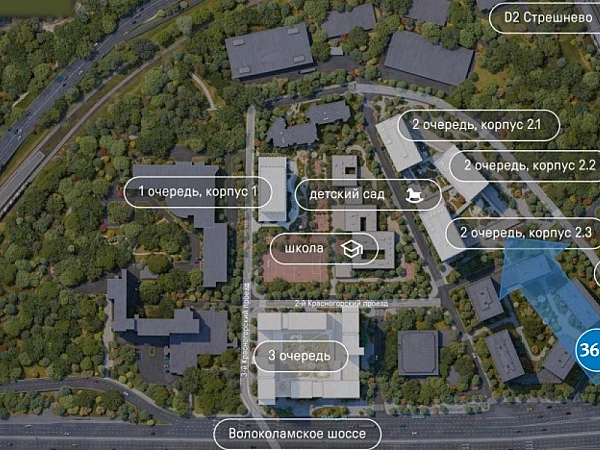 . Рядом полностью заселенный ЖК из 5 башен с апартаментами на 1007 и 513 лотов с мелкой нарезкой – район с плотной застройкой и растущим количеством жителей на ограниченном железными дорогами, шоссе и лесопарком участке. Внешний трафик за счет посетителей парка Покровское-Стрешнево, крупного медучреждения и близости к пересадочному узлу – пересечение второго диаметра Нахабино-Подольск и Московского центрального кольца, удобный выход к наземному транспорту в центр Москвы и районы вдоль Волоколамского шоссе в сторону МКАД. Высокая стадия готовности и распроданности квартир в ЖК.