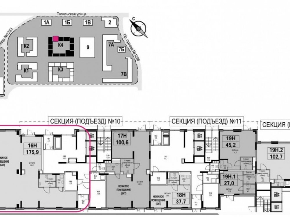 . Отлично просматривается с ул. Тагильская – основного заезда на транспорте и пешеходном маршруте от метро к четырем жилым комплексам рядом;