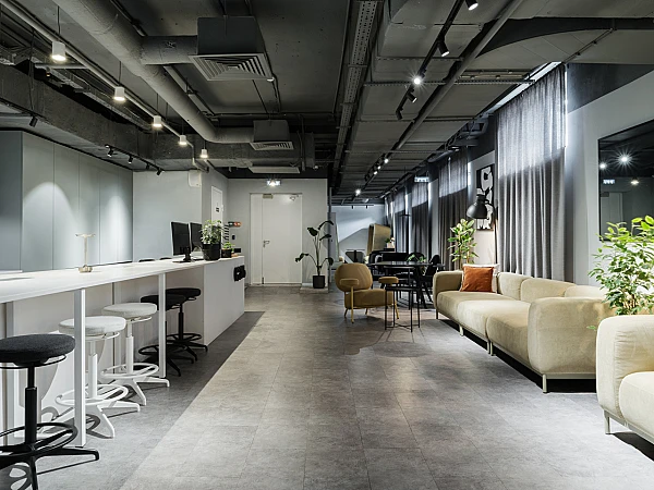 Функциональная планировка, есть мягкая зона отдыха, переговорные разной вместимости, оборудованная кухня с обеденной зоной, санузлы.